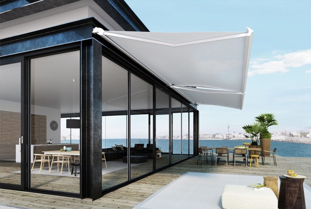 Store conçu avec des toiles spécialement adaptées aux intempéries.